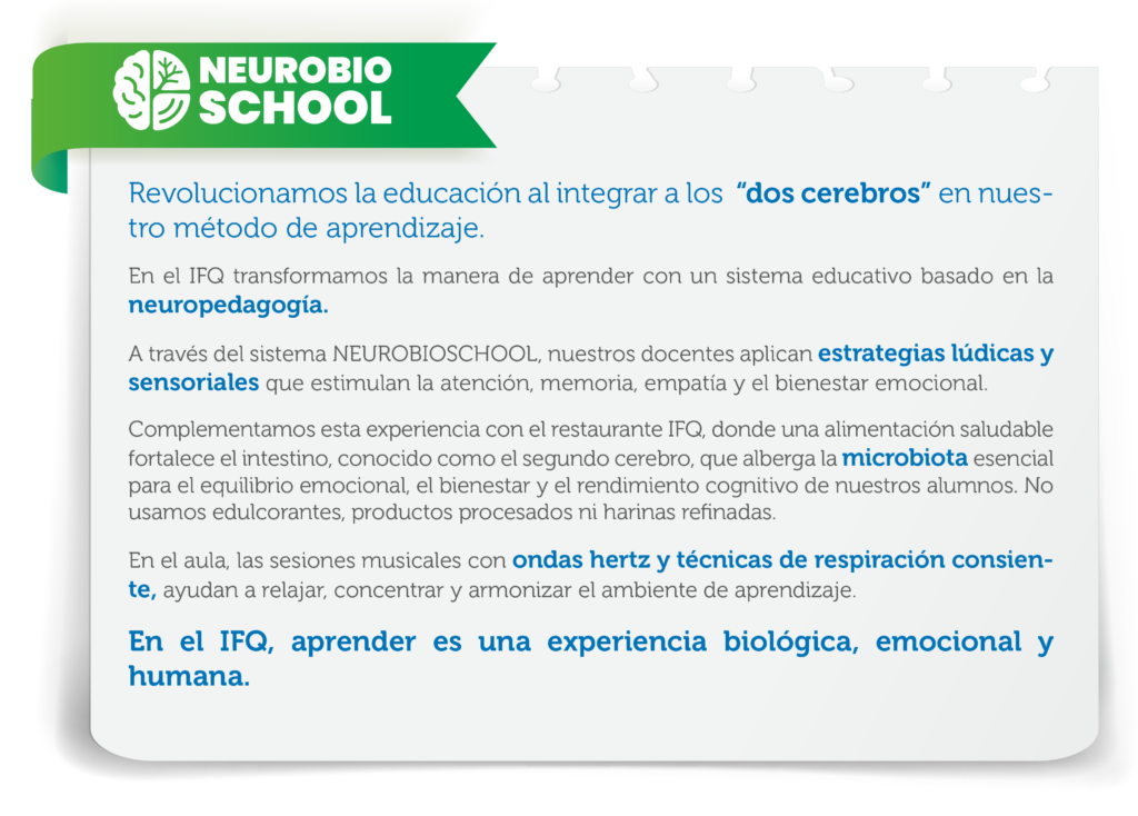 En Secundaria IFQ formamos jóvenes que aprenden a aprender. A través de un modelo basado en la neuropedagogía, integramos emoción, ciencia y experiencia para desarrollar pensamiento crítico, dominio responsable de la tecnología, aprendizaje de oficios e idiomas, preparando a nuestros alumnos para adaptarse, crear y liderar en la vida diaria.